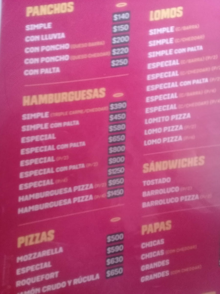 Welcome to Pancho Primero, a vibrant fast food haven located in Maipú, Mendoza. Nestled at Sarmiento 1553, this restaurant shines with a menu crafted for flavor enthusiasts and casual diners alike. The star of the show is their sándwiches, notably the Sándwich Barroluco, which combines tender pork loin, ham, eggs, and rich cheddar, perfect for sharing. If burgers are your craving, don’t miss the Hamburguesa Santifica, layered with double meat, cheddar, and bacon—a true indulgence.